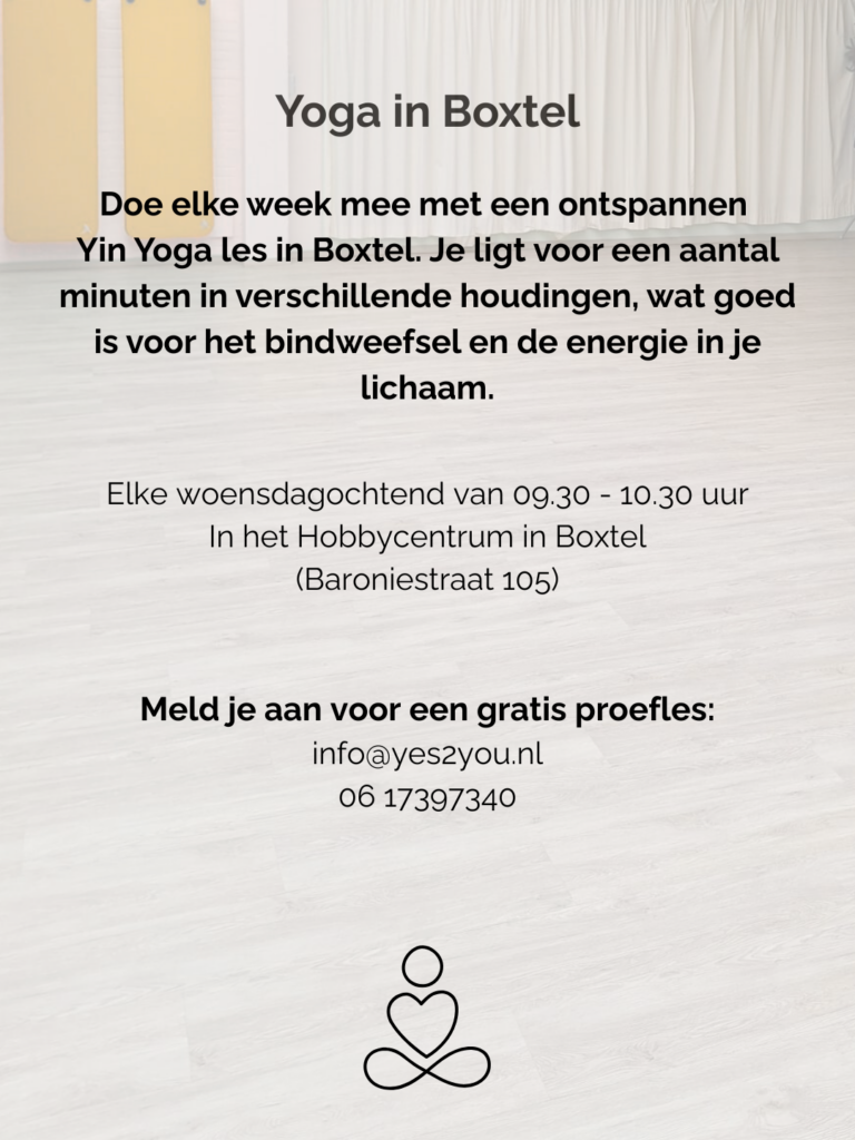 Bij Yes2You kan je terecht voor Yin Yoga vanuit een holistische visie. Samen kijken we naar het geheel: wat je voelt in je lichaam, wat er speelt in je gedachten, wat je emotioneel nodig hebt en wat er energetisch uit balans is. Zo ontstaat ruimte om te vertragen, te ontspannen en te herstellen — niet alleen op de mat, maar ook in het dagelijks leven. Je bent welkom voor op maat gemaakte een privé les, waarin we samen kunnen kijken naar jouw klachten en hulpvraag of voor een yogales in een kleine groep.